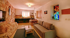 All units are luxurious and spacious, decorated with stained glass windows and rustic furniture. Located at the edge of a nature reserve, "Hitragut" guesthouses are quiet and secluded, with magnificent view overlooking the Kineret, Galilee mountains and the Golan heights. The rooms are supplied with wine, fruit juice, cookies, milk, yogurts, several types of tea and coffee, a fruit basket and more.